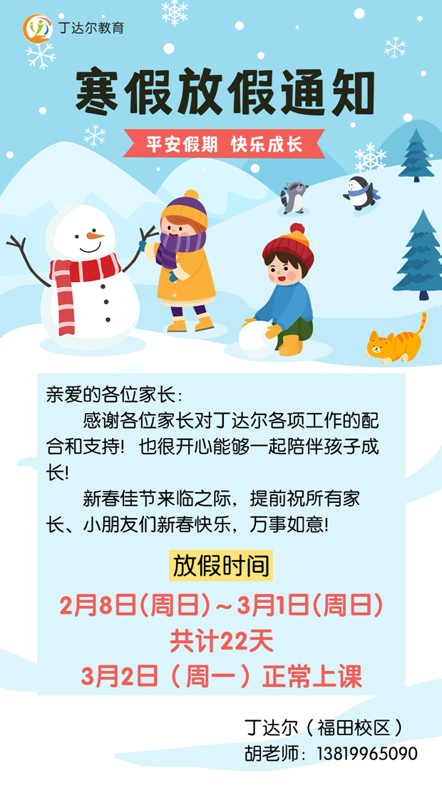 寒假安康,阖家团圆;愿孩子们假期安全相伴,快乐成长,在轻松时光里积蓄力量,新学期再启新程!